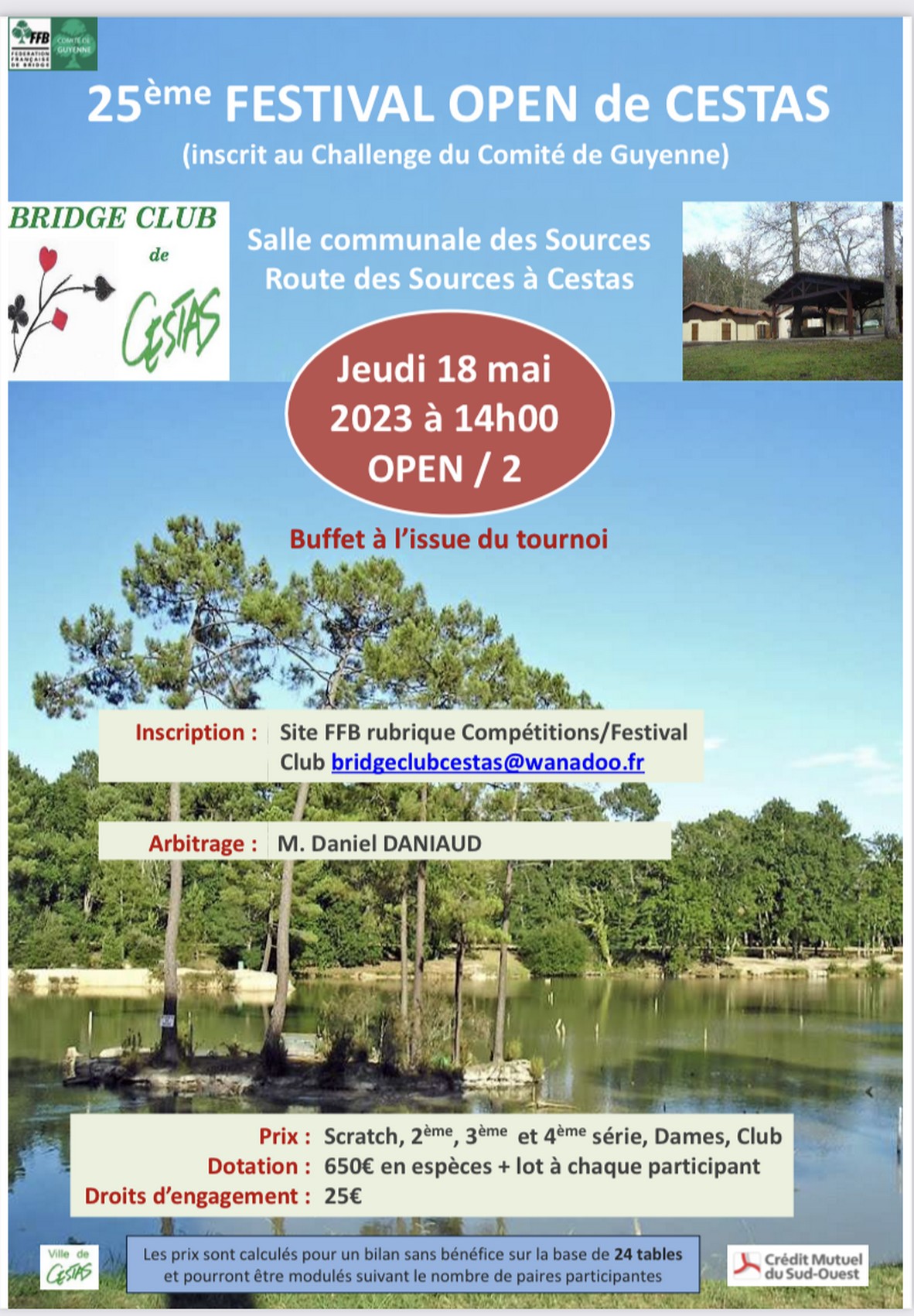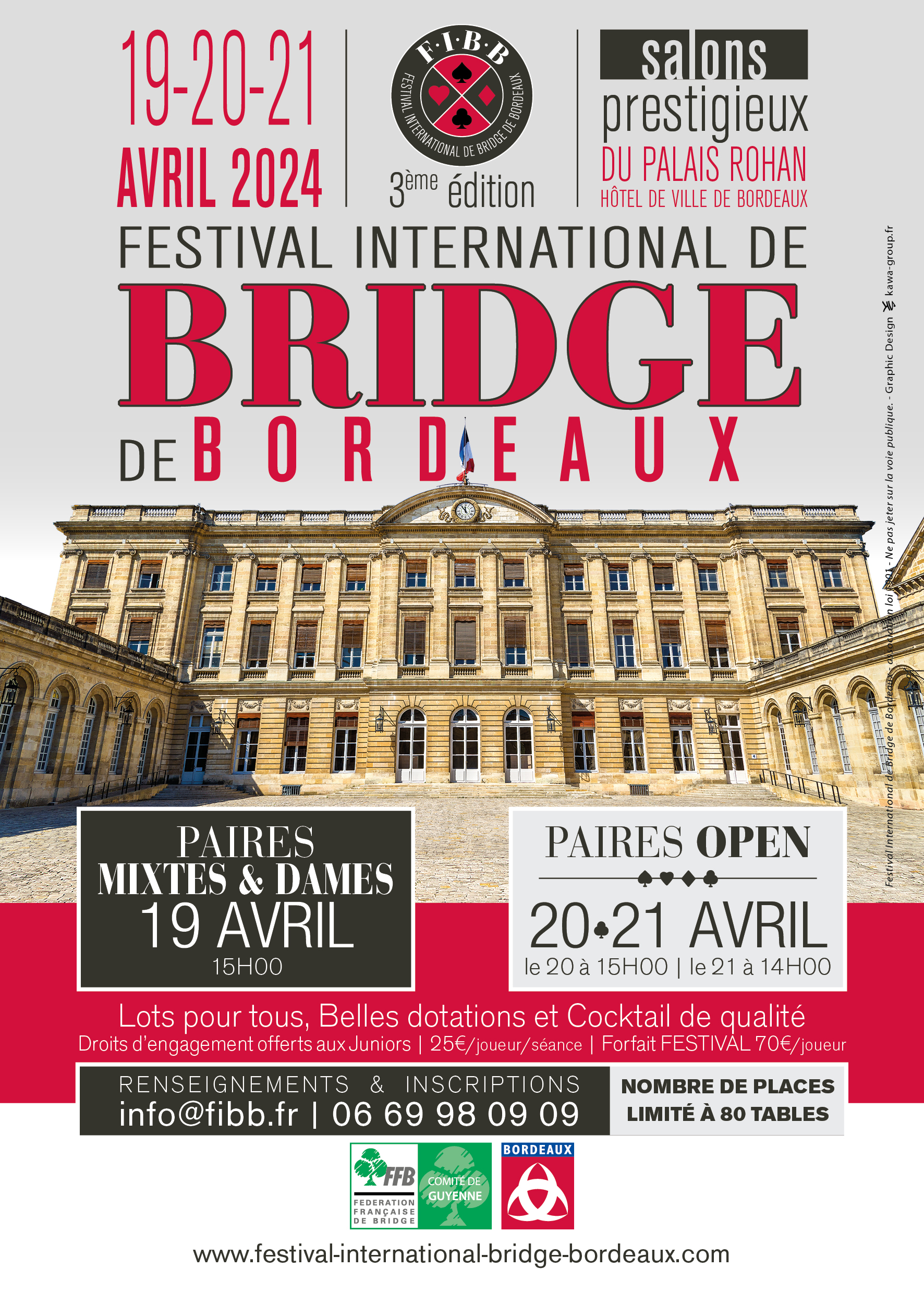 Du 23 au 25 juin 2023 - Le festival international de bridge de Bordeaux - Voir le document