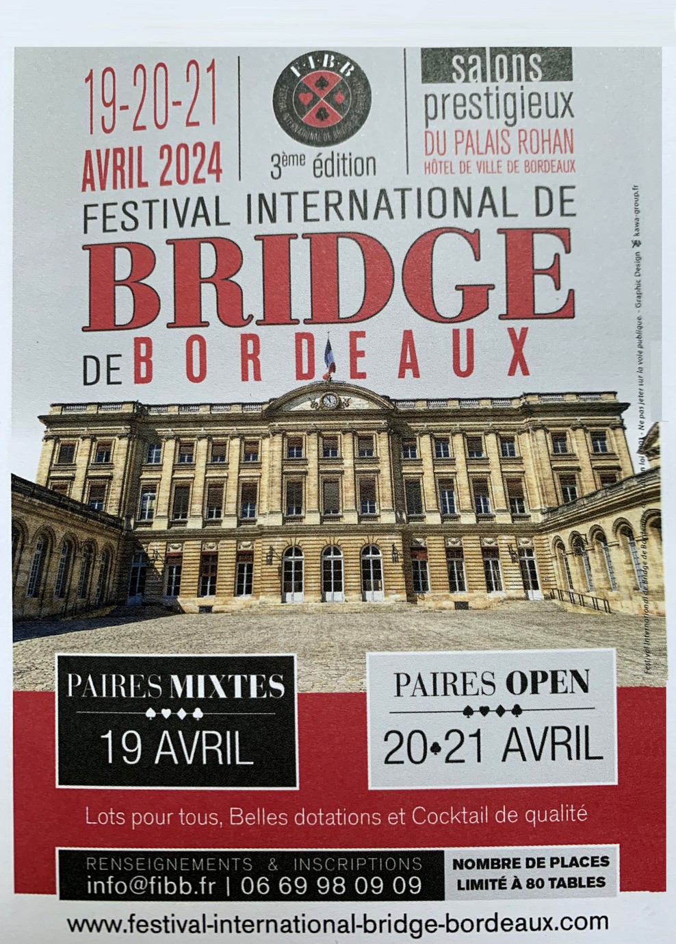 Festival international de Bridge au Palais Rohan de Bordeaux avril 2024 : voir le document
